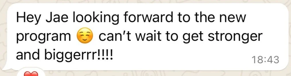 Jae has attention to detail, is adaptable, and places high value on quality movement. Her approach to programming is challenging both mentally and physically. Jae is passionate about seeing her athletes reach their goals and is adaptable in her approach to achieving this. Even though training is the main purpose of our relationship, Jae is passionate about those she works with reaching their full potential across all aspects of their life, and this is evident in her approach to being a coach. I’m a pretty big fan of Jae’s and once you work with her, you’ll realise why!